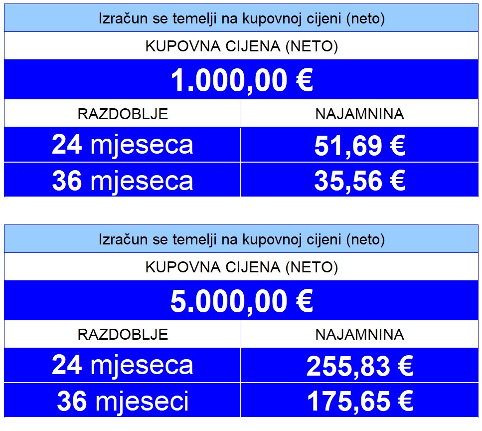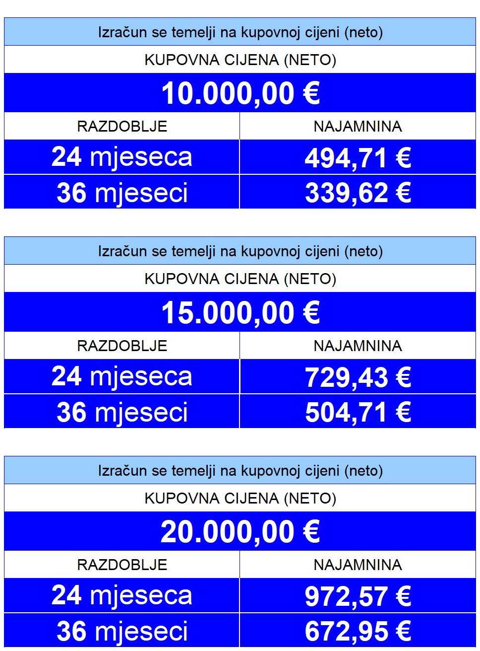 • Nema promjene u uvjetima financiranja, bez valutne klauzule, fiksno u EUR za vrijeme trajanja najma
